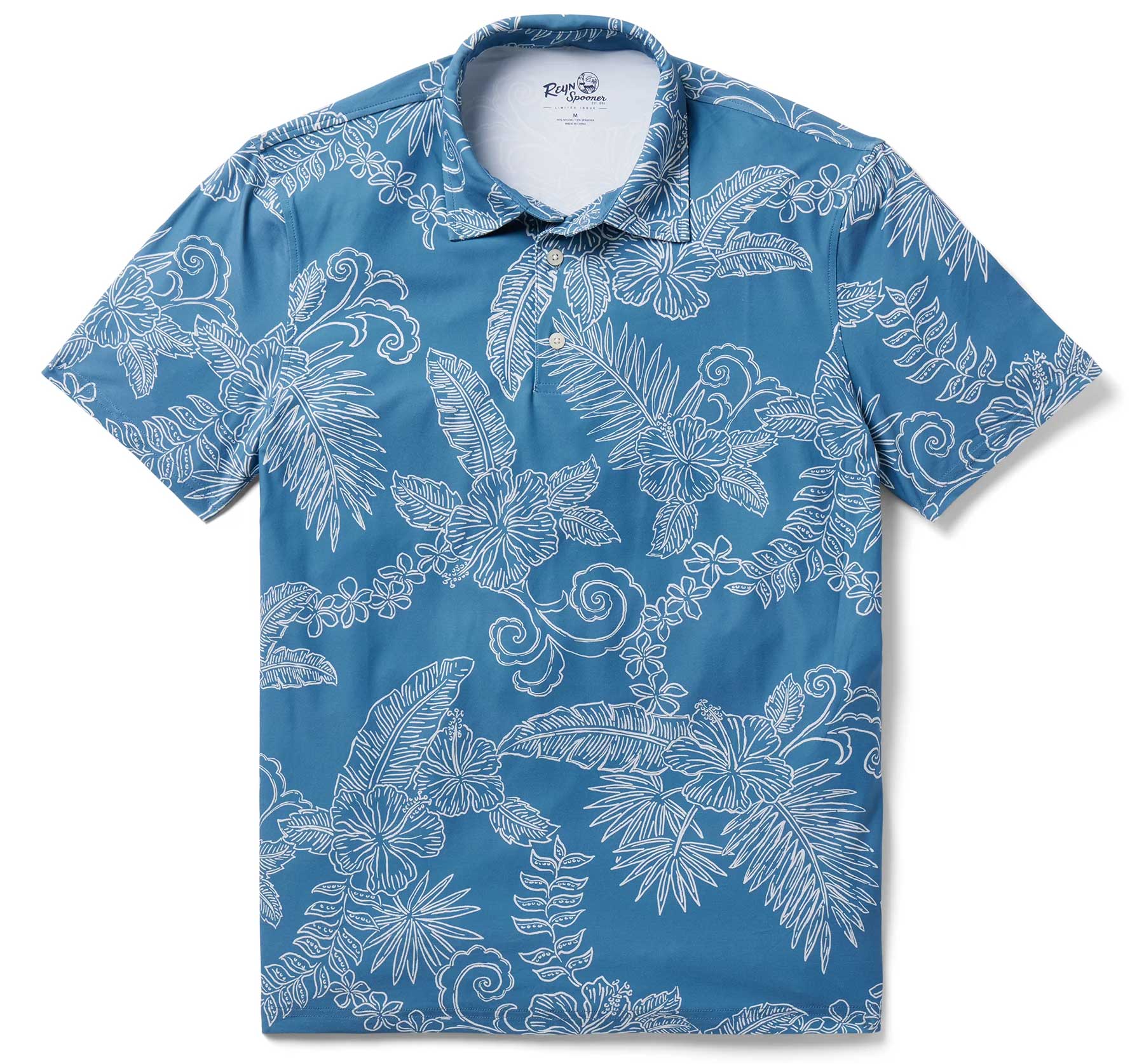 Fancy Biscus Performance Polo Blue Hawaiian Shirt