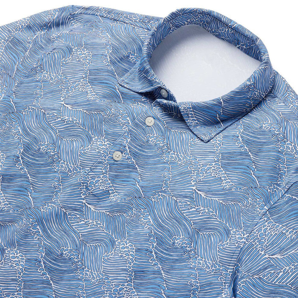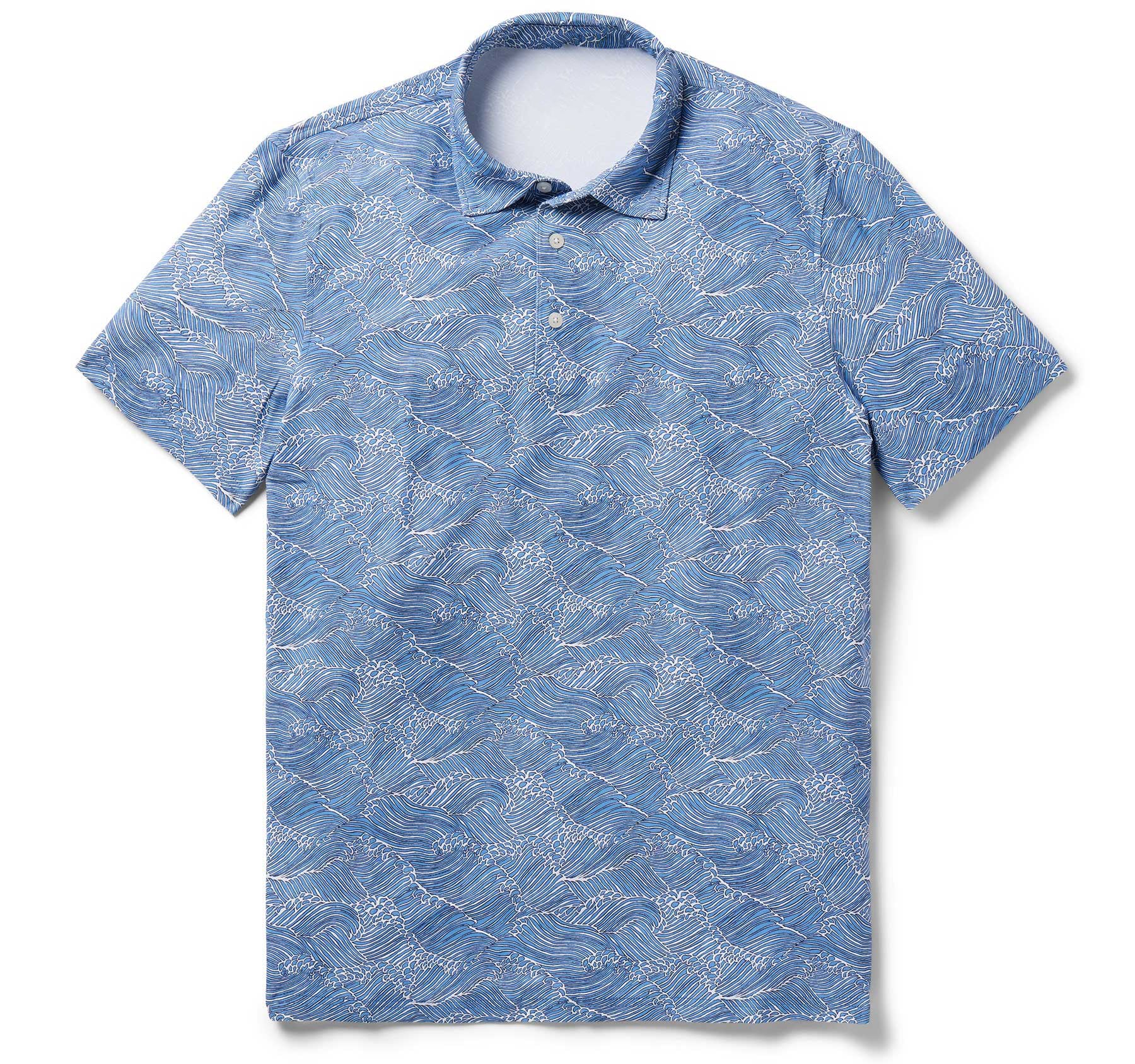 Blue Molokai Channel Performance Polo Hawaiian Shirt