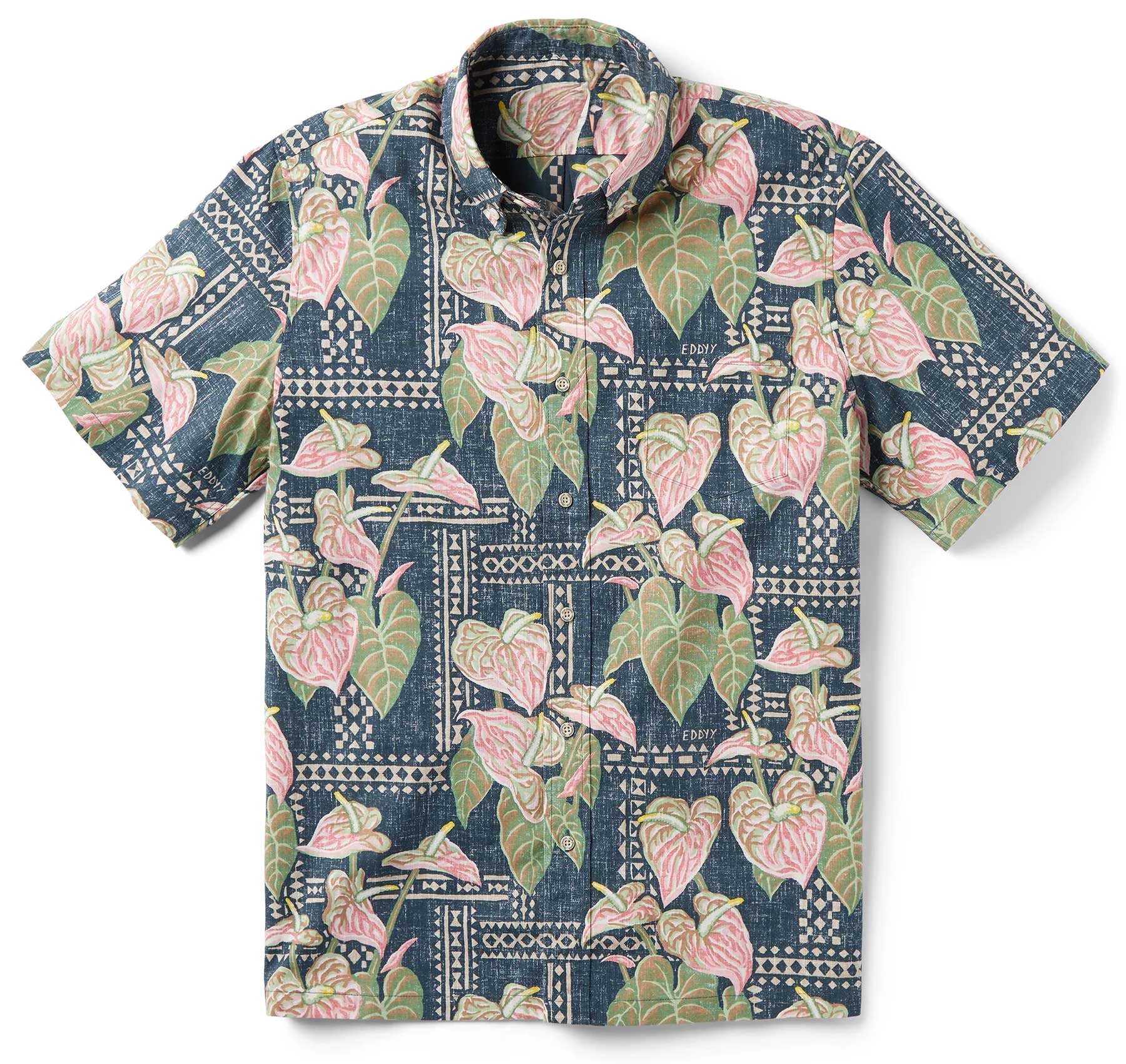 Black Tapa Anthurium Hawaiian Shirt