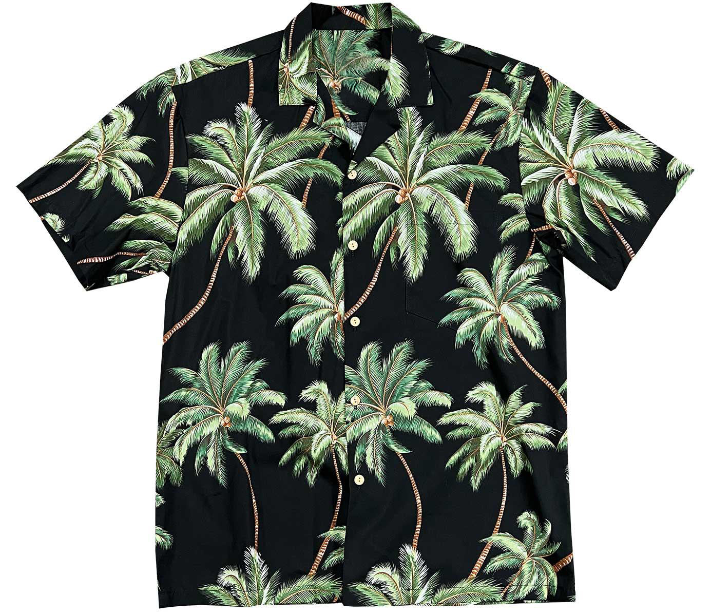 Black Wailea Palms Hawaiian Shirt